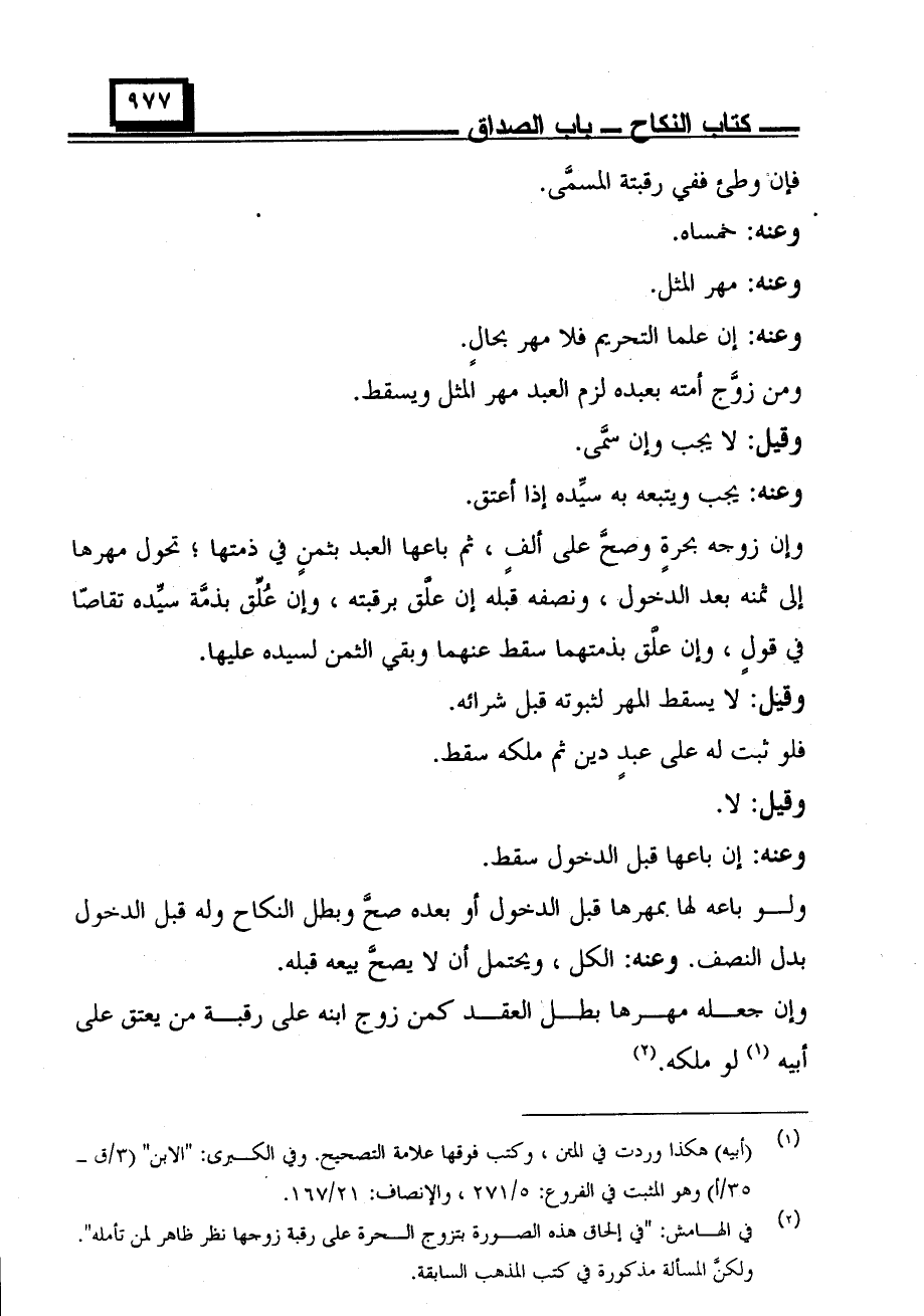 ومن زوّج أمته بعبده لزم العبد مهر المثل ويسقط.