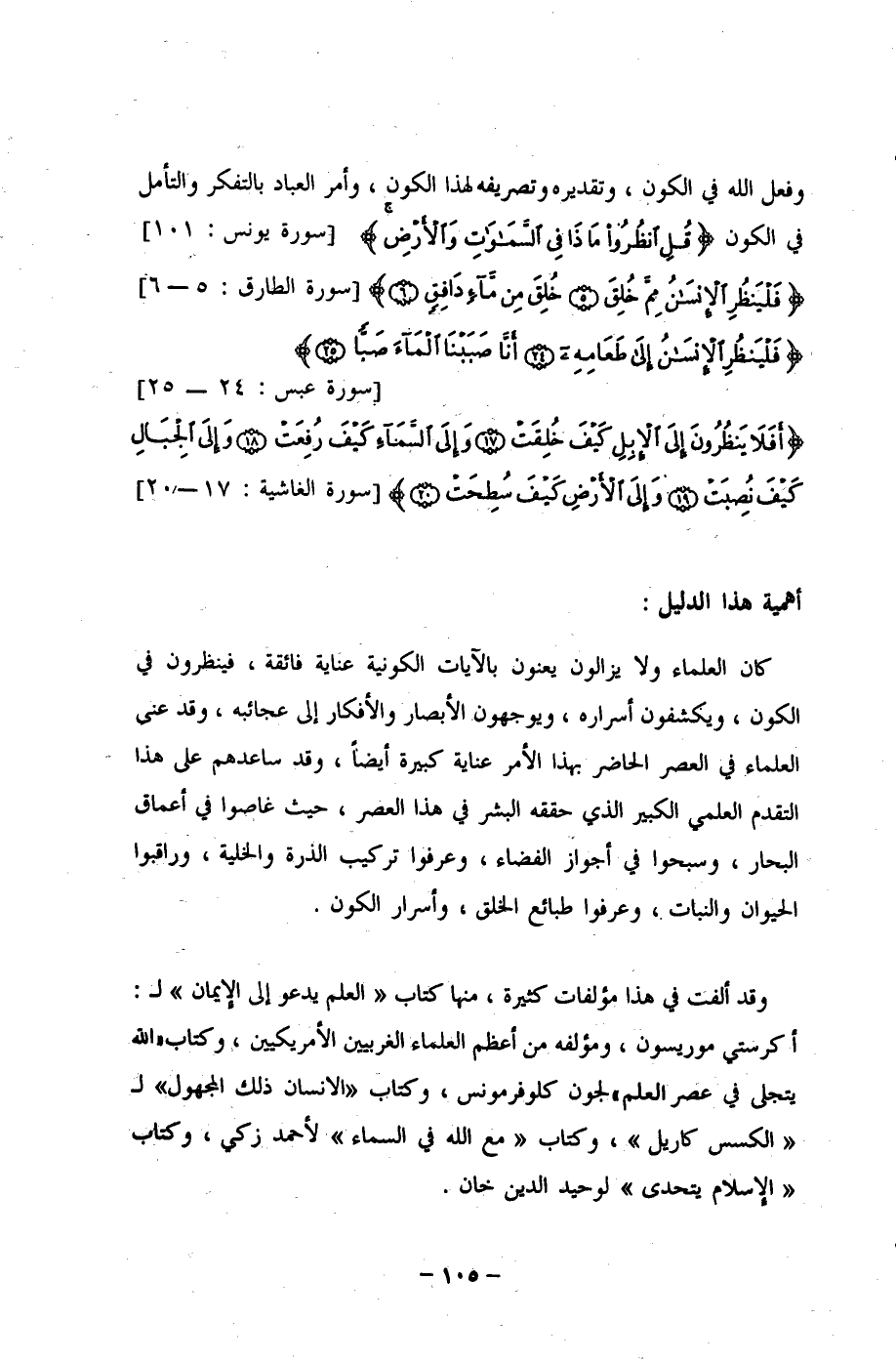 وقد ألفت في هذا مؤلفات كثيرة، منها كتاب "العلم يدعو إلى الإيمان" لـ: أكرستي موريسون، ومؤلفه من أعظم العلماء الغربيين الأمريكيين، وكتاب "الله يتجلى في عصر العلم "لجون كلوفرمونس، وكتاب "الإنسان ذلك المجهول" لـ "الكسس كاريل"، وكتاب "مع الله في السماء" لأحمد زكي، وكتاب "الإسلام يتحدى" لوحيد الدين خان.