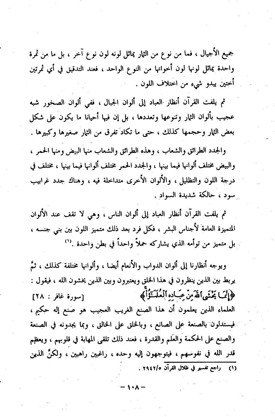 ويوجه أنظارنا إلى ألوان الدواب والأنعام أيضًا، وألوانها مختلفة كذلك، ثمَّ يربط بين الذين ينظرون في هذا الخلق ويعتبرون وبين الذين يخشون الله، فيقول: {إِنَّمَا يَخْشَى اللَّهَ مِنْ عِبَادِهِ الْعُلَمَاءُ} [فاطر: 28].