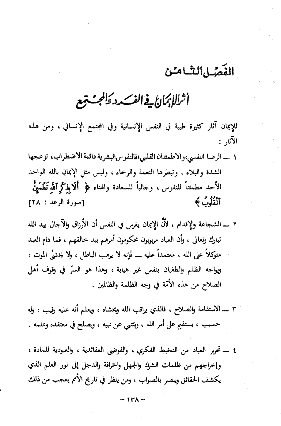 الفَصل الثامن أثر الإيمَان في الفَرد وَالمُجتمع