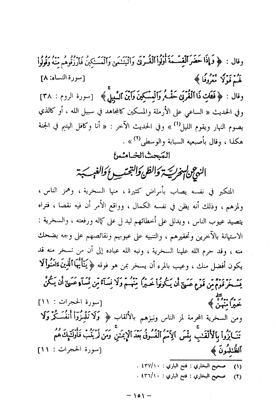 المبحث الخامس النهي عن السخرية والظن والتجسس والغيبة
