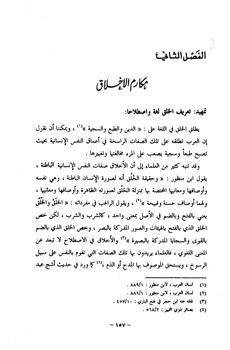 وقد تنبه كثر من العلماء إلى أن الأخلاق صفات النفس الإنسانية الباطنة، يقول ابن منظور: "وحقيقة الخُلُق أنه لصورة الإنسان الباطنة، وهي نفسه وأوصافها ومعانيها الختصة بها بمنزلة الخُلُق لصورته الظاهرة وأوصافها ومعانيها، ولهما أوصاف حسنة وقبيحة" (¬2)، ويقول الراغب في مفرداته: "الخلَقْ والخُلُق يعني بالفتح وبالضم في الأصل بمعنى واحد، كالشرب والشرب, لكن خص الخلق الذي بالفتح بالهيئات والصور المدركة بالبصر، وخص الخلق الذي بالضم بالقوي والسجايا المدركة بالبصيرة" (¬3) والأخلاق في الاصطلاح لا تبعد عن المعنى اللغوي، فالعلماء يريدون بها تلك الصفات التي تقوم كالنفس على سبيل الرسوخ، ويستحق الموصوف بها المدح أو الذم، (¬4) كما ورد في حديث أشج عبد