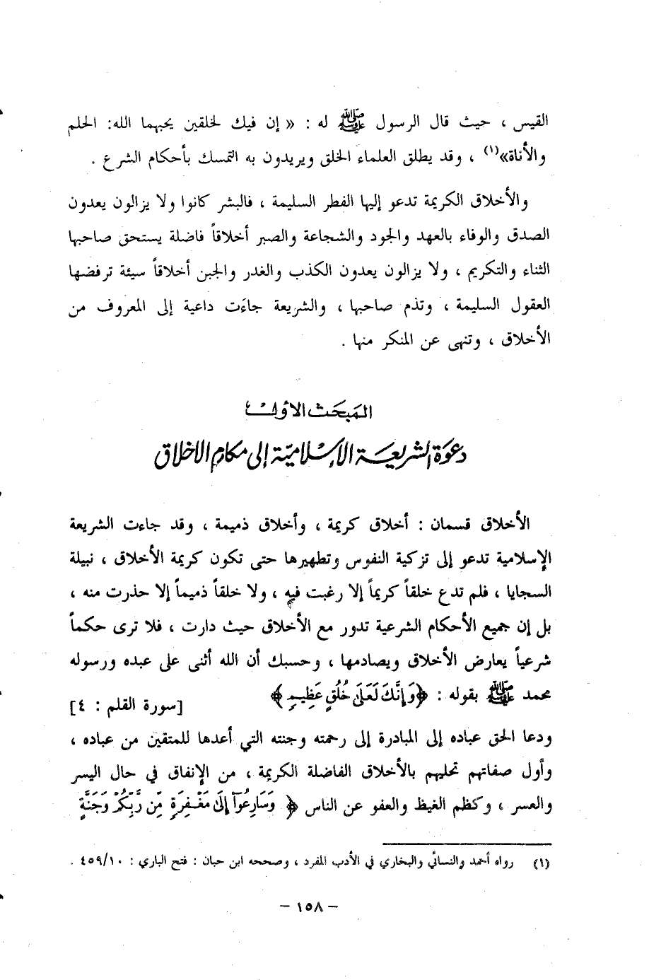 المبحث الأول دعوة الشريعة الإسلامية إلى مكارم الأخلاق
