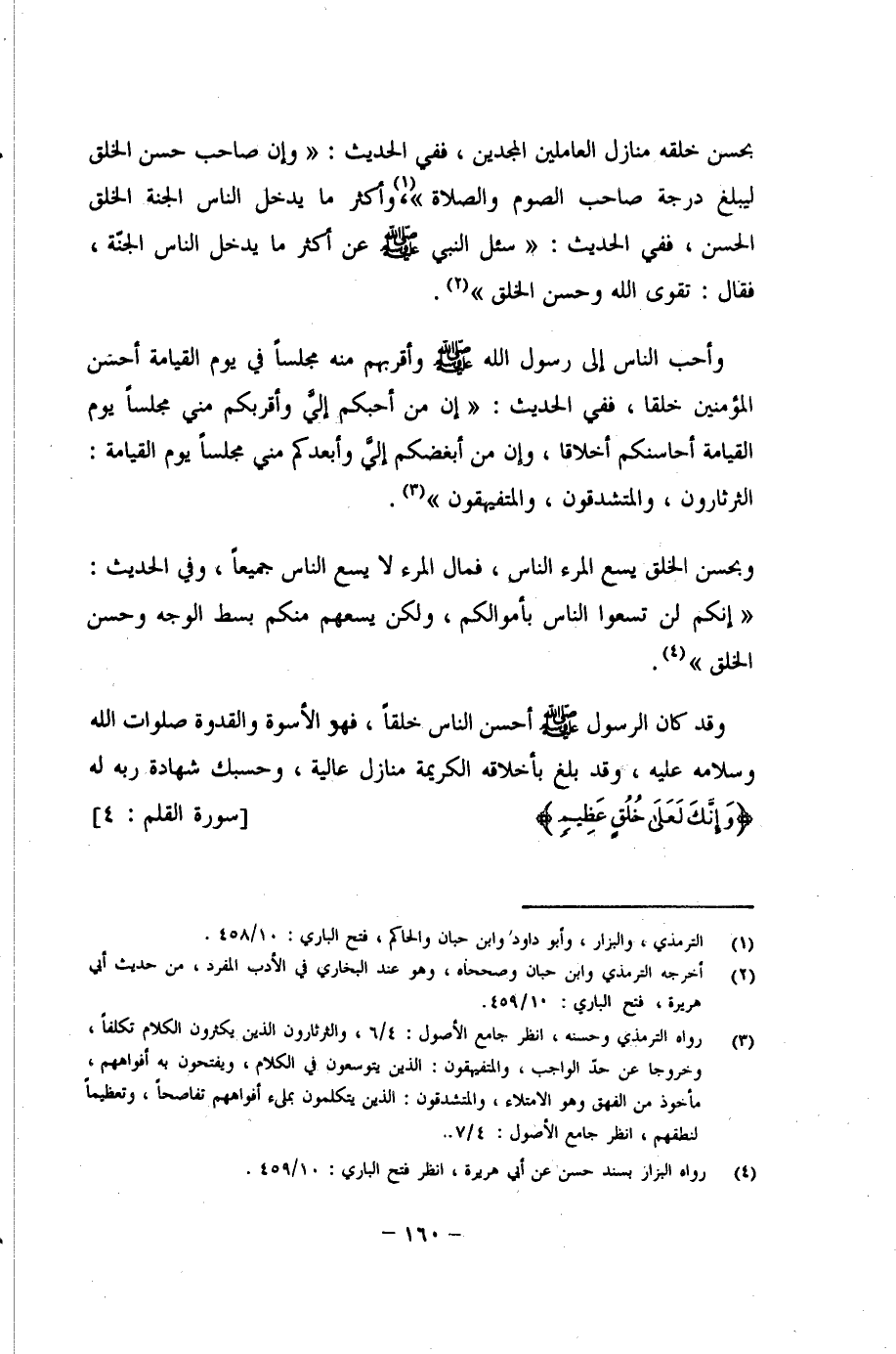 (¬3) رواه الترمذي وحسنه، انظر جامع الأصول: 4/ 6، والثرثارون الذين يكثرون الكلام تكلفًا، وخروجا عن حدّ الواجب، والمتفيهقون: الذين يتوسعون في الكلام، ويفتحون به أفواههم، مأخوذ من الفهق وهو الامتلاء، والمتشدقون: الذين يتكلمون بملء أفواههم تفاصحًا، وتحظيمًا لنطقهم، انظر جامع الأصول: 4/ 7.