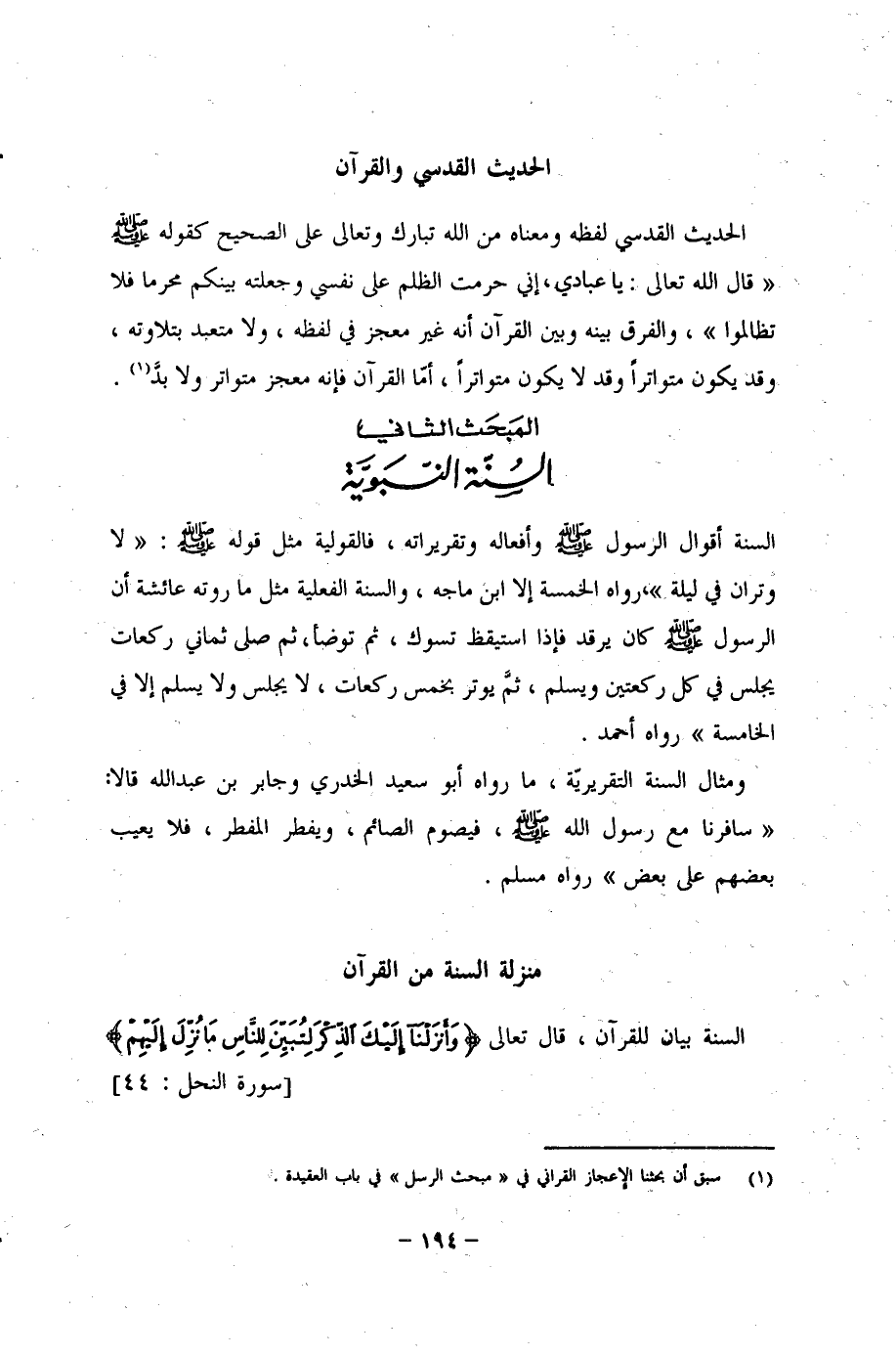 (¬1) سبق أن بحثنا الإعجاز القرآني في "مبحث الرسل" في باب العقيدة.