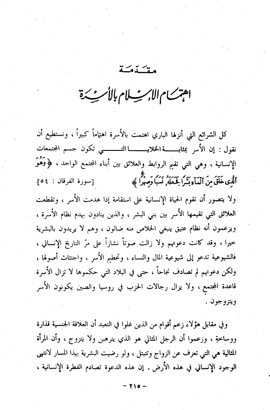 مقَدّمَة اهتمام الإسلام بالأسرَة
