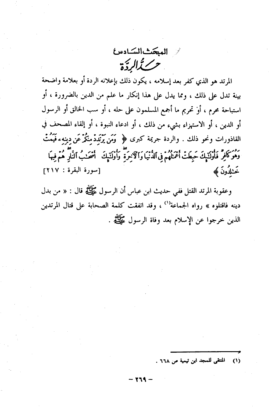 المَبْحَث السَادس حَدُّ الرِدَّة