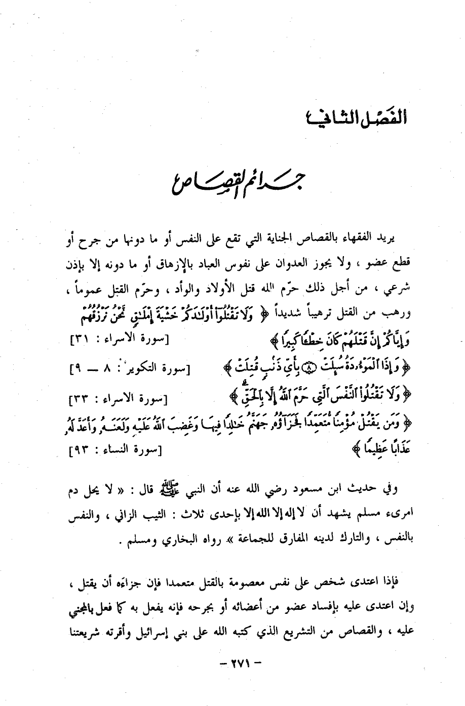 الفَصْل الثاني جَرائم القصَاص