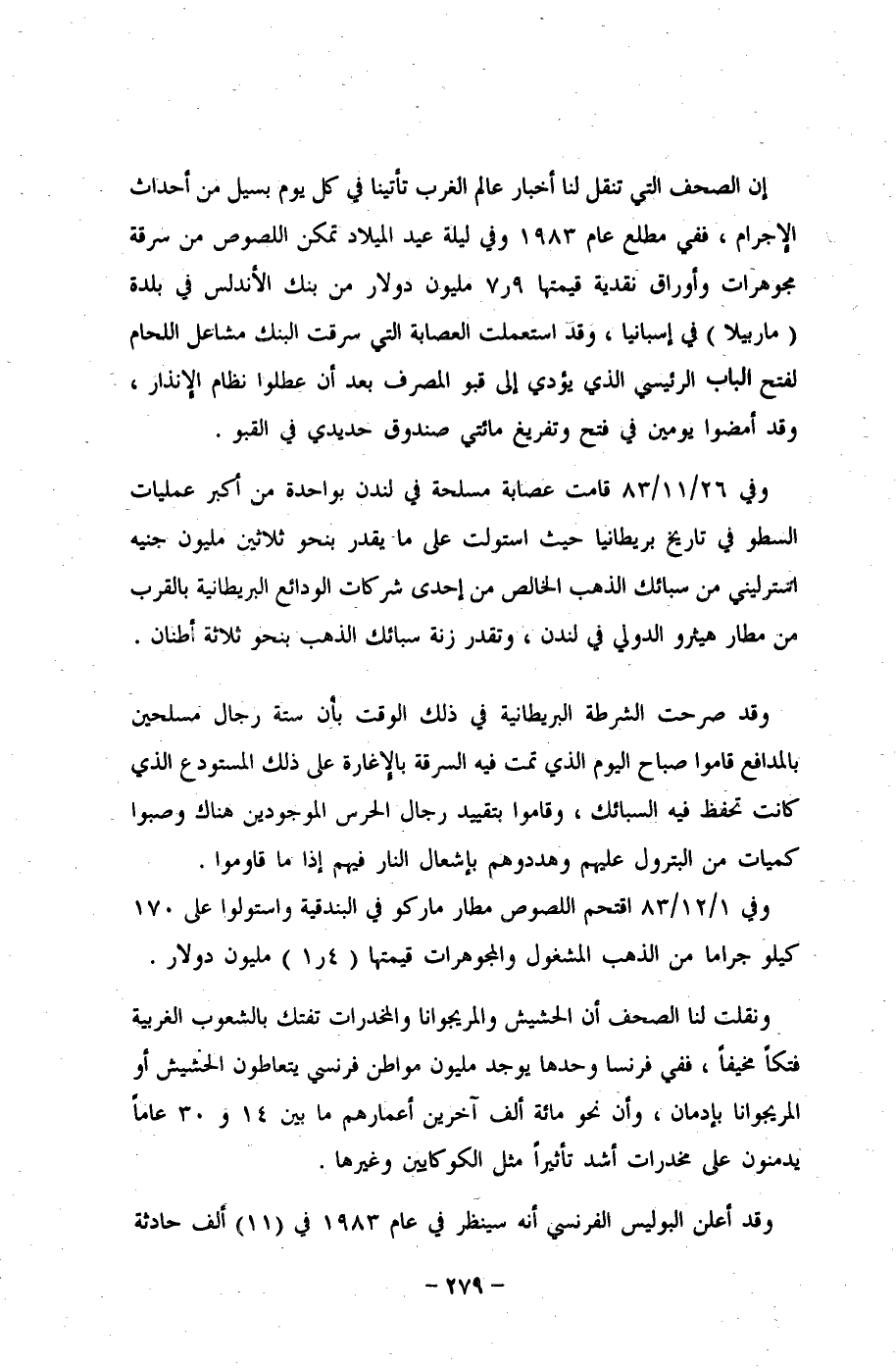 وفي 1/ 12 / 83 اقتحم اللصوص مطار ماركو في البندقية واستولوا على 170 كيلو جراما من الذهب المشغول والمجوهرات قيمتها (1.4) مليون دولار.