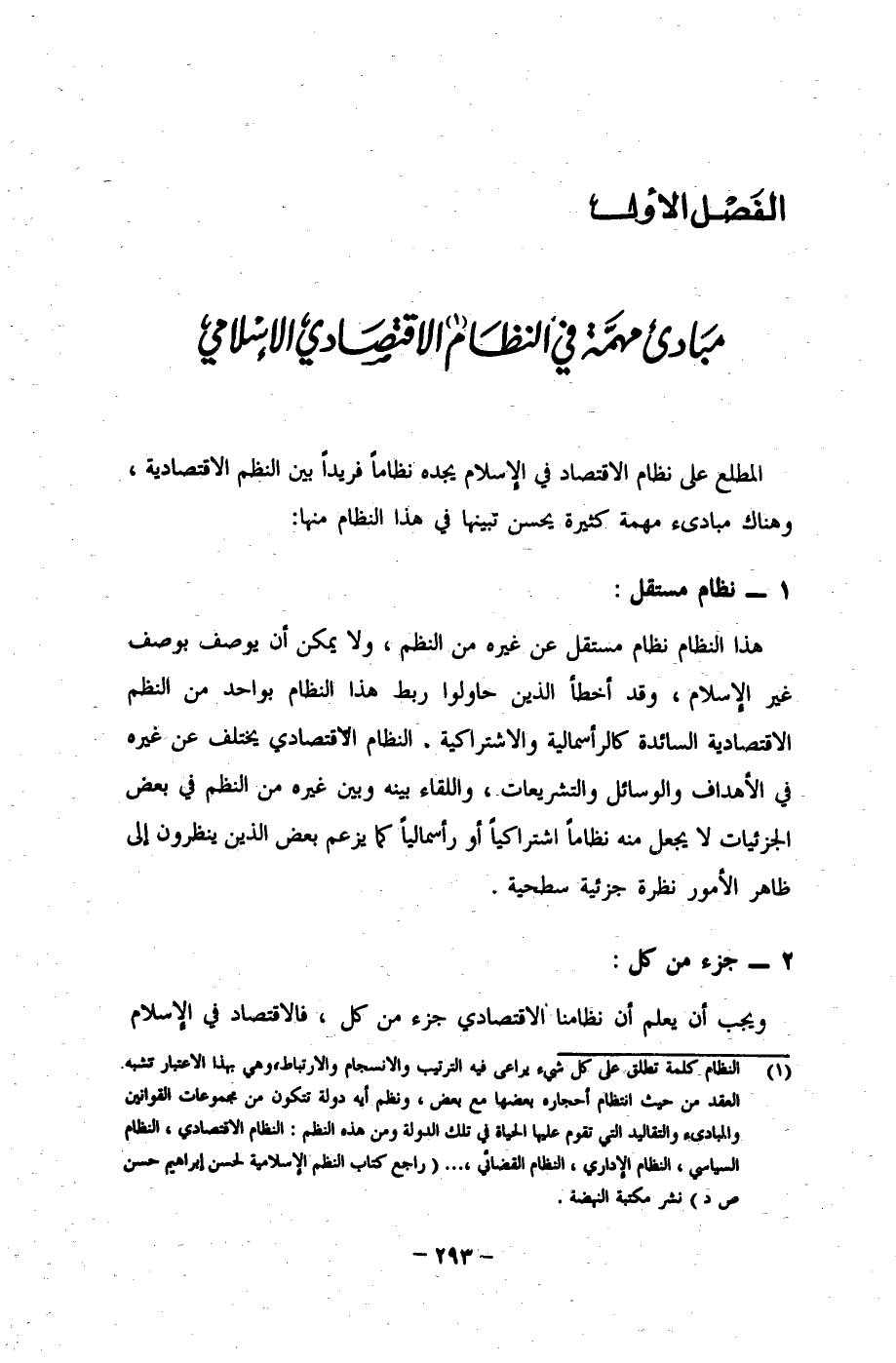 الفَصْل الأول مبَاديء مهمَّة في النظام (¬1) الاقتصادي الإسلامي