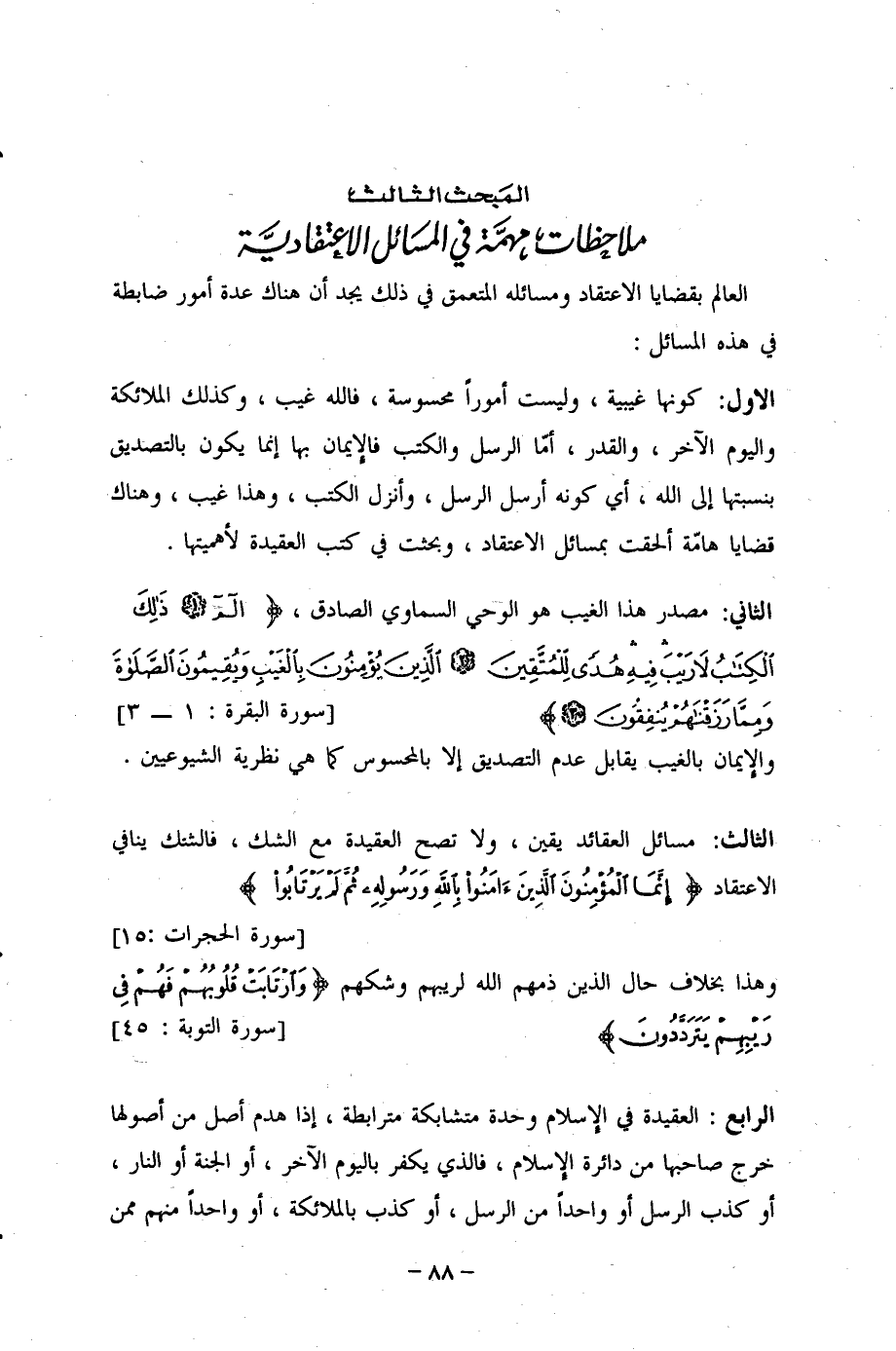 المبحث الثالث ملاحظات مهمة في المسائل الإعتقادية