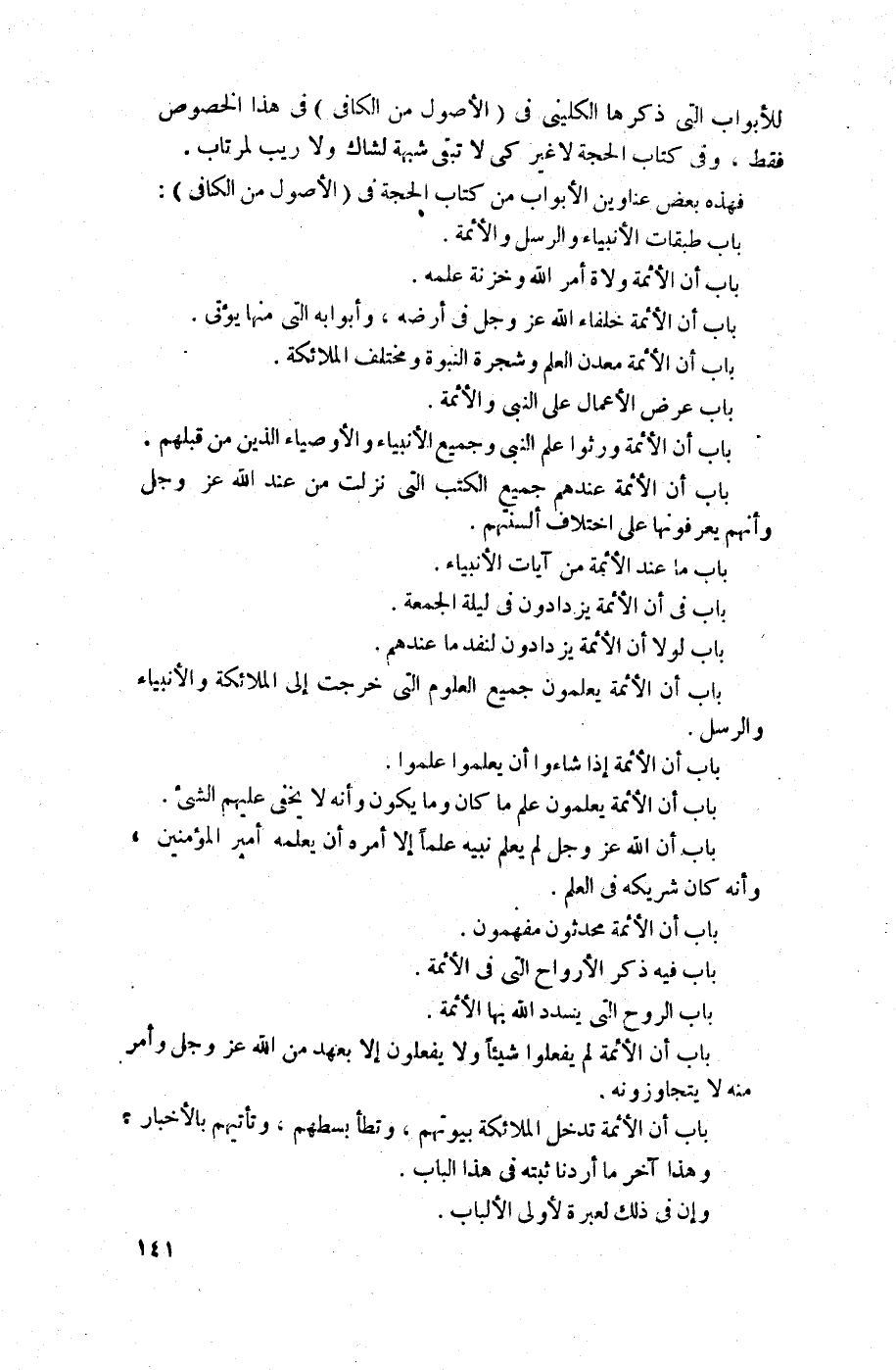 للأبواب التي ذكرها الكليني في (الأصول من الكافي) في هذا الخصوص فقط. وفي كتاب الحجة لا غير كي لا تبقى شبهة لشاك ولا ريب لمرتاب.