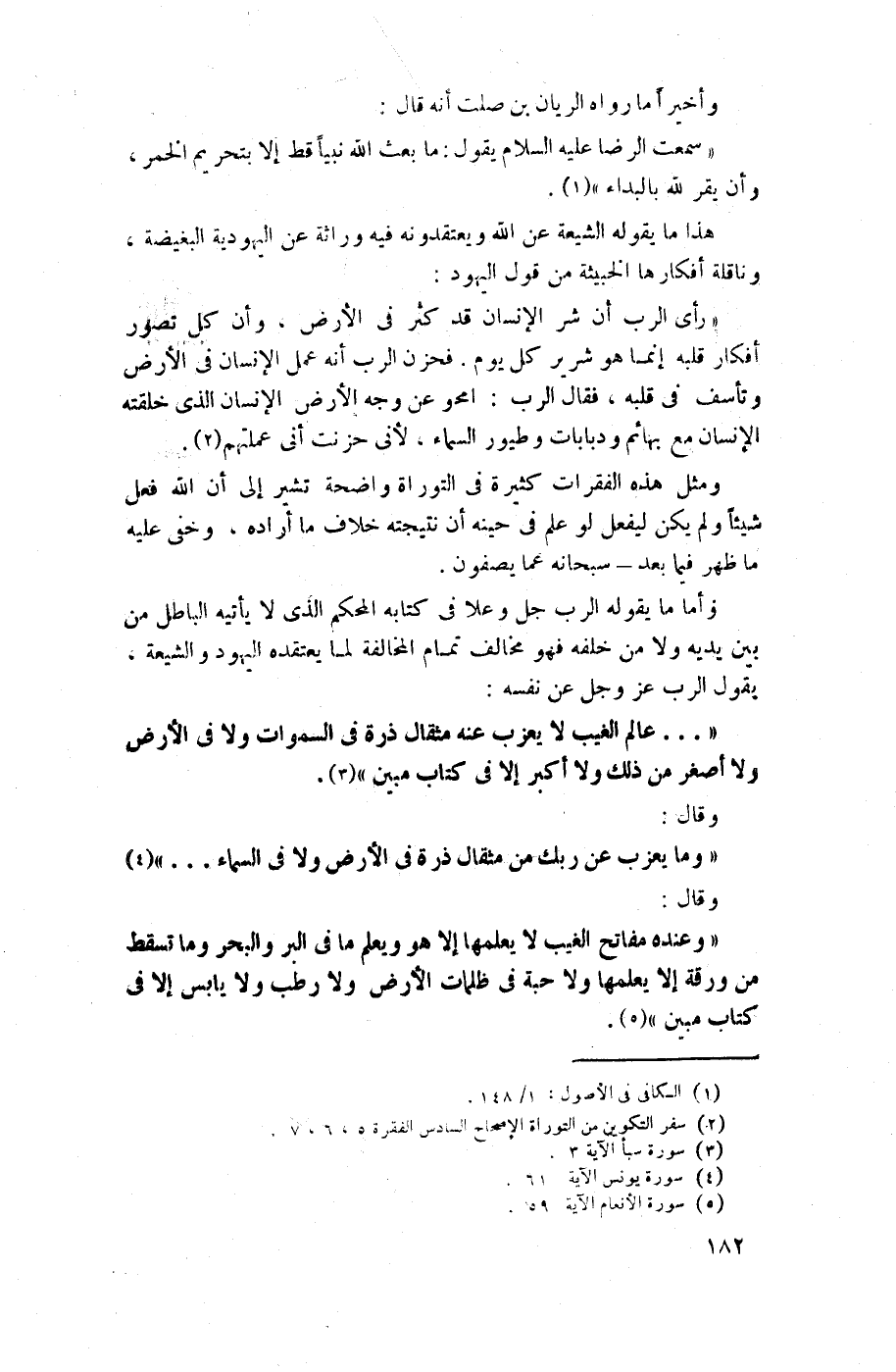 وأما ما يقوله الرب جل وعلا في كتابه المحكم الذي لا يأتيه الباطل من بين يديه ولا من خلفه فهو مخالف تمام المخالفة لما يعتقده اليهود والشيعة يقول الرب عز وجل عن نفسه: