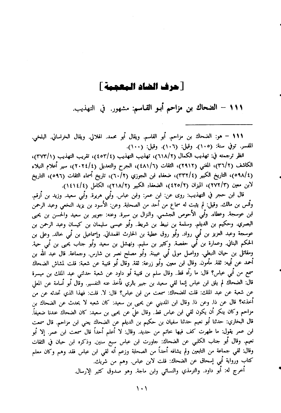 111 - الضَّحَّاك بن مُزَاحم أَبُو الْقَاسِم مَشْهُور فِي التَّهْذِيب