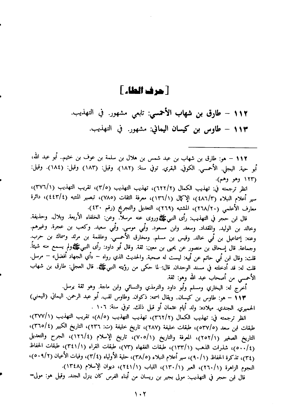 112 - طَارق بن شهَاب الأحمسي تَابِعِيّ مَشْهُور فِي التَّهْذِيب