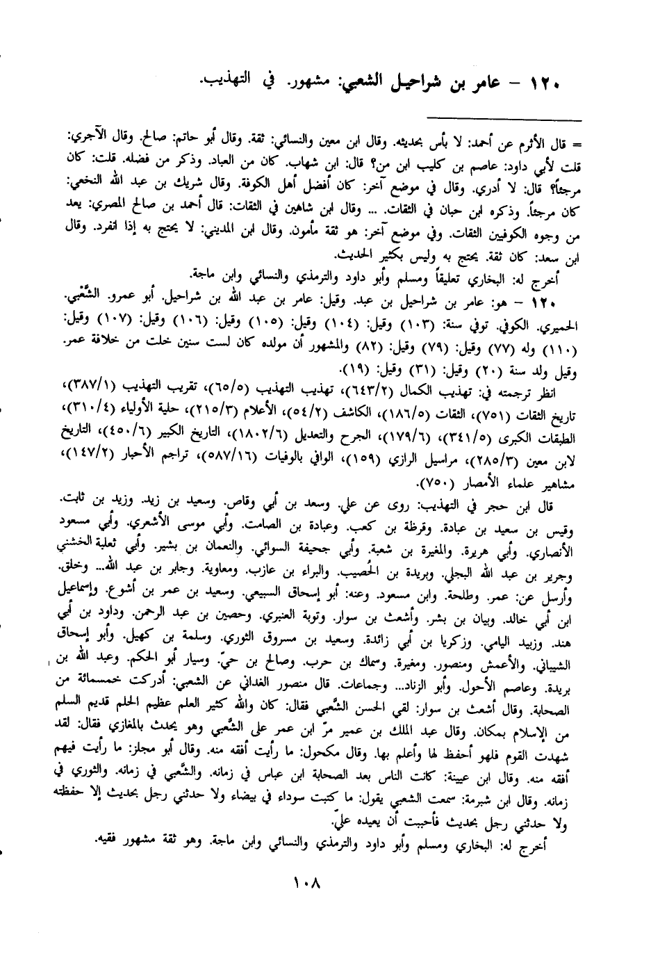 120 - عَامر بن شرَاحِيل الشّعبِيّ مَشْهُور فِي التَّهْذِيب