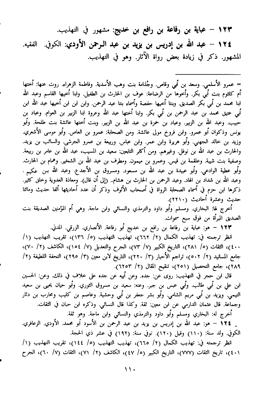 124 - عبد الله بن إِدْرِيس بن يزِيد بن عبد الرَّحْمَن الأودي الْكُوفِي الْفَقِيه الْمَشْهُور ذكر فِي زِيَادَة بعض رُوَاة الْآثَار وَهُوَ فِي التَّهْذِيب