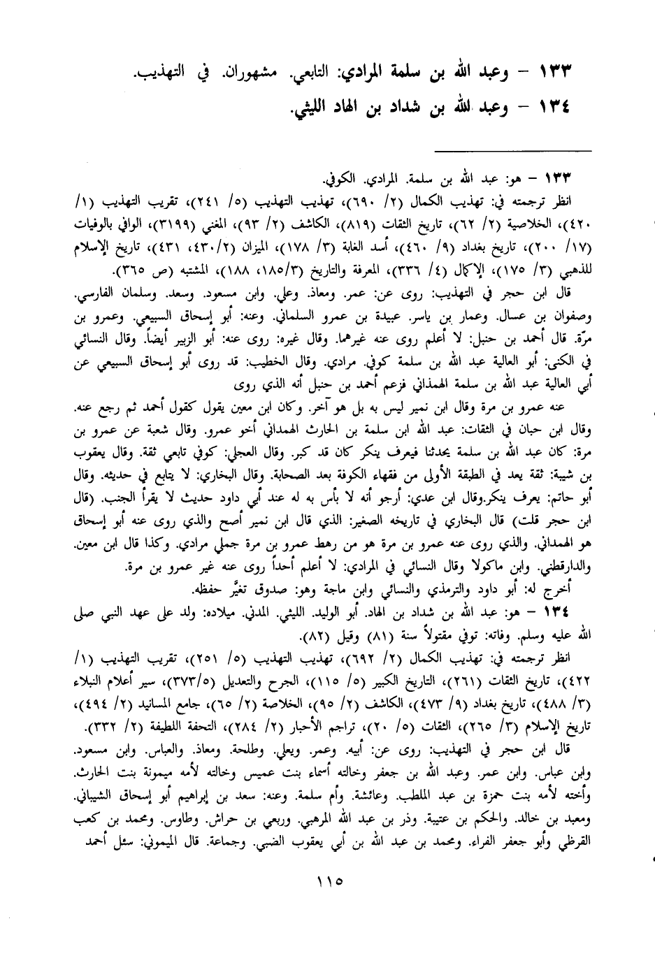 133 - وَعبد الله بن سَلمَة الْمرَادِي مشهوران فِي التَّهْذِيب