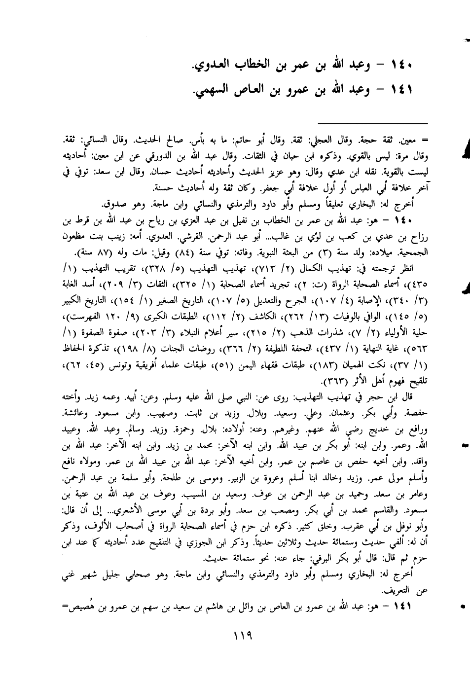 141 - وَعبد الله بن عَمْرو بن الْعَاصِ السَّهْمِي