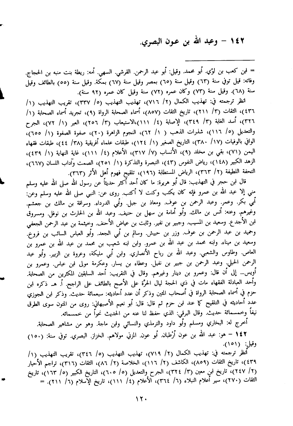 142 - وَعبد الله بن عون الْبَصْرِيّ