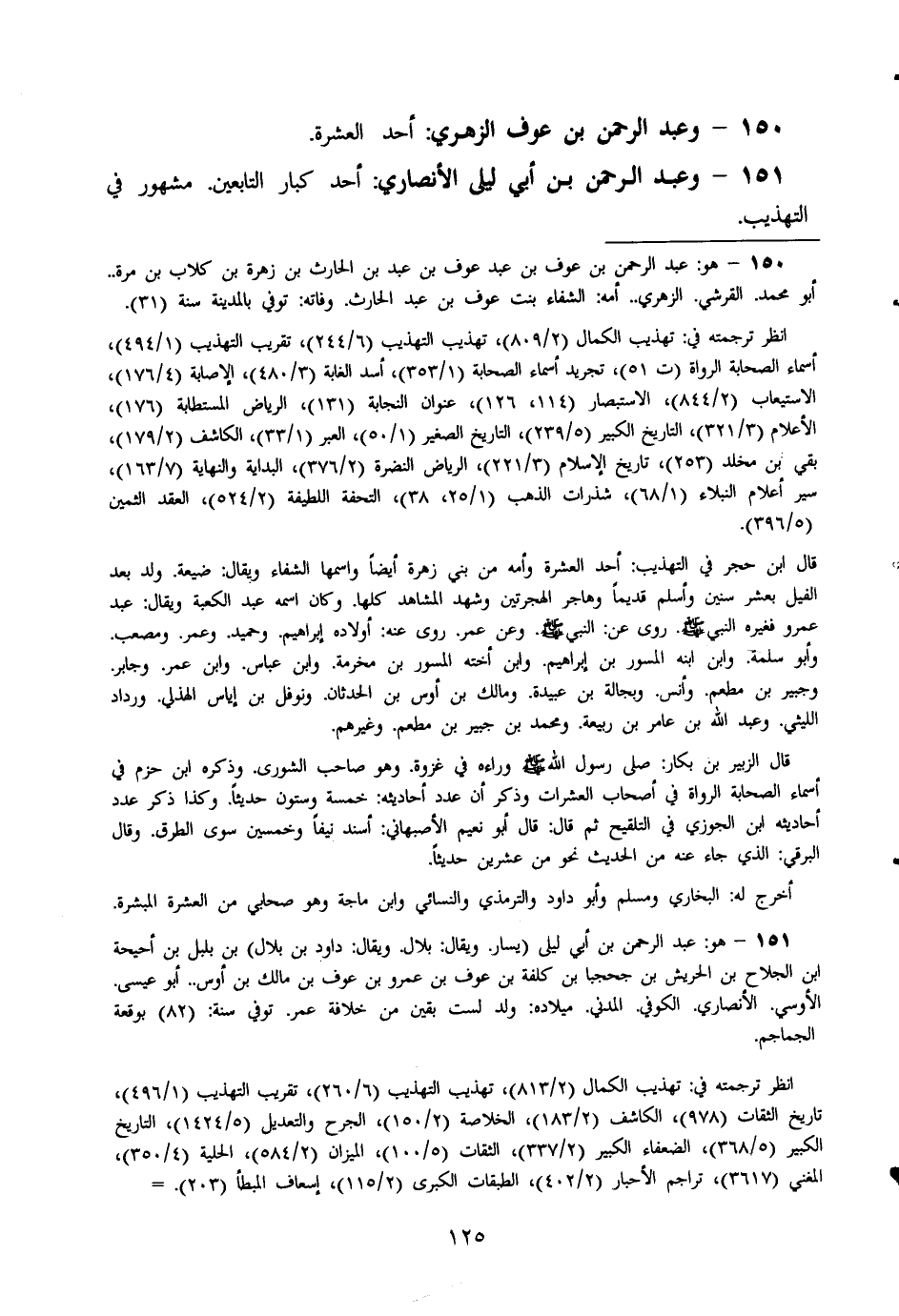 150 - وَعبد الرَّحْمَن بن عَوْف الزُّهْرِيّ أحد الْعشْرَة