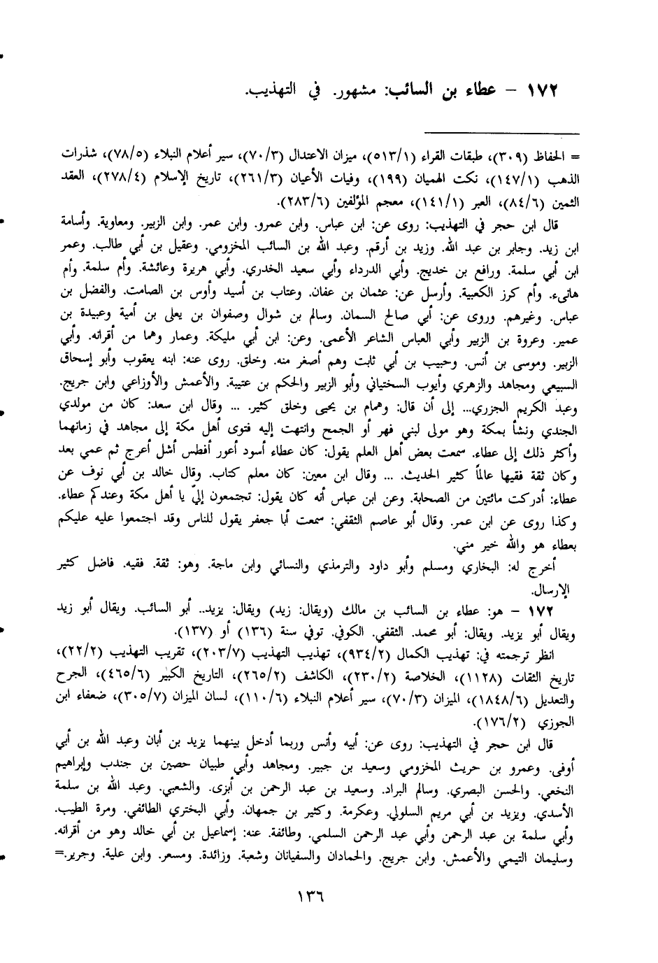 172 - عَطاء بن السَّائِب مَشْهُور فِي التَّهْذِيب