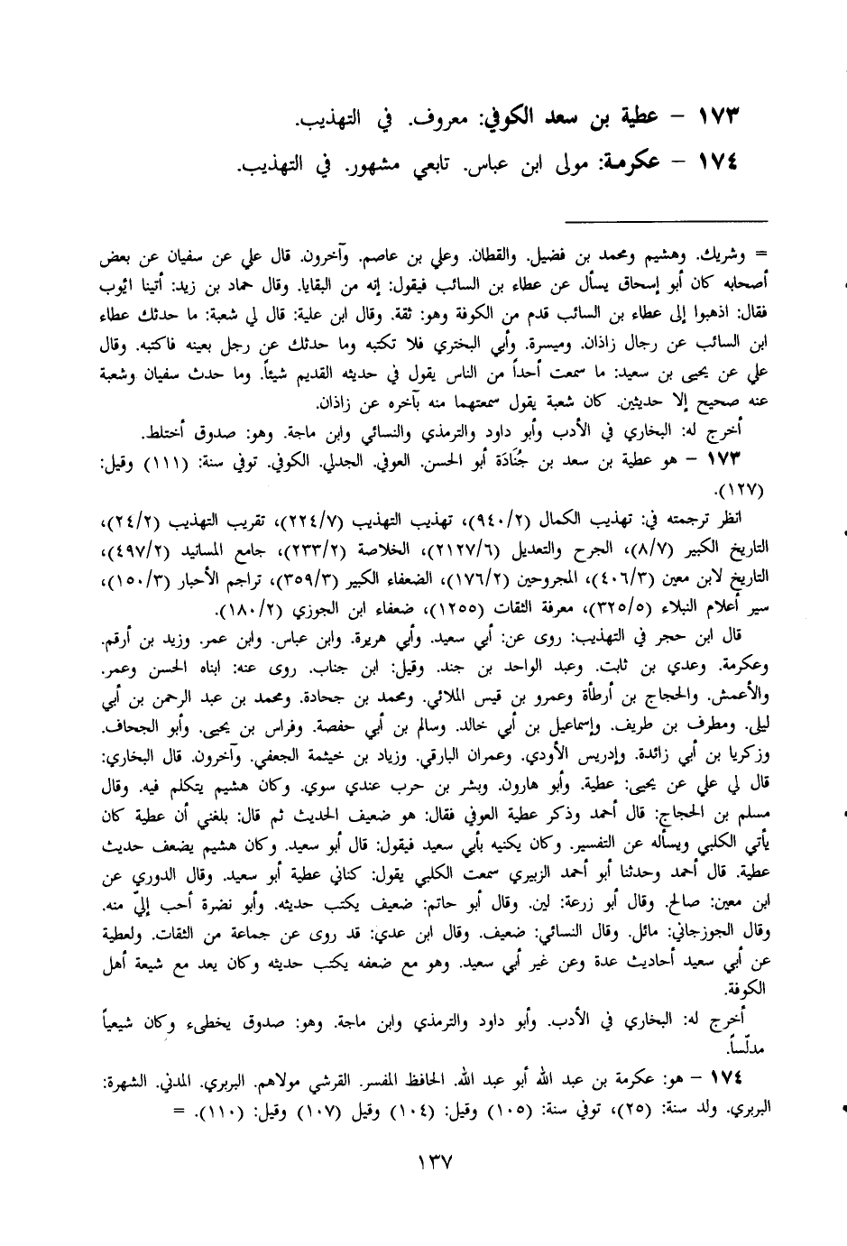 173 - عَطِيَّة بن سعد الْكُوفِي مَعْرُوف فِي التَّهْذِيب