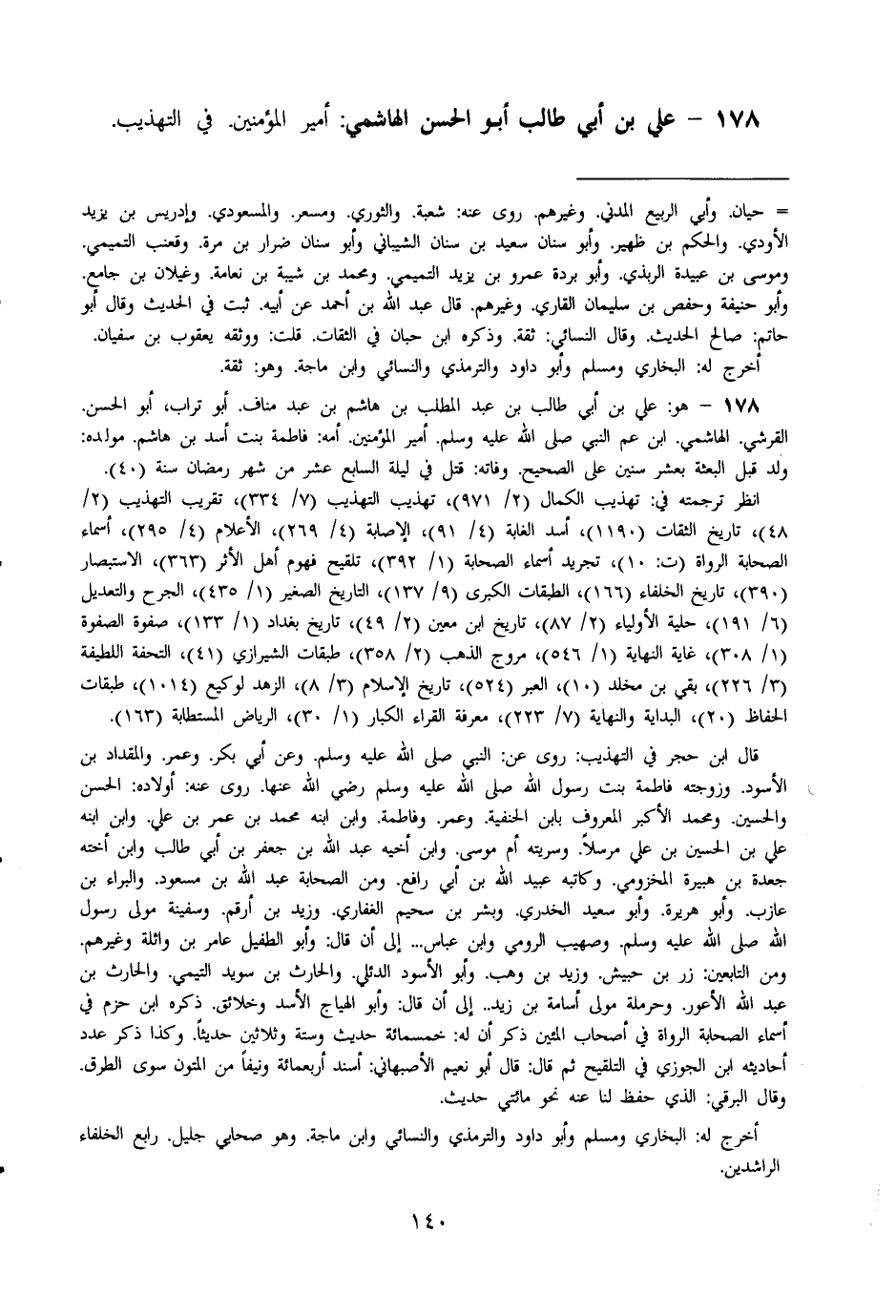 178 - عَليّ بن أبي طَالب أَبُو الْحسن الْهَاشِمِي أَمِير الْمُؤمنِينَ فِي التَّهْذِيب
