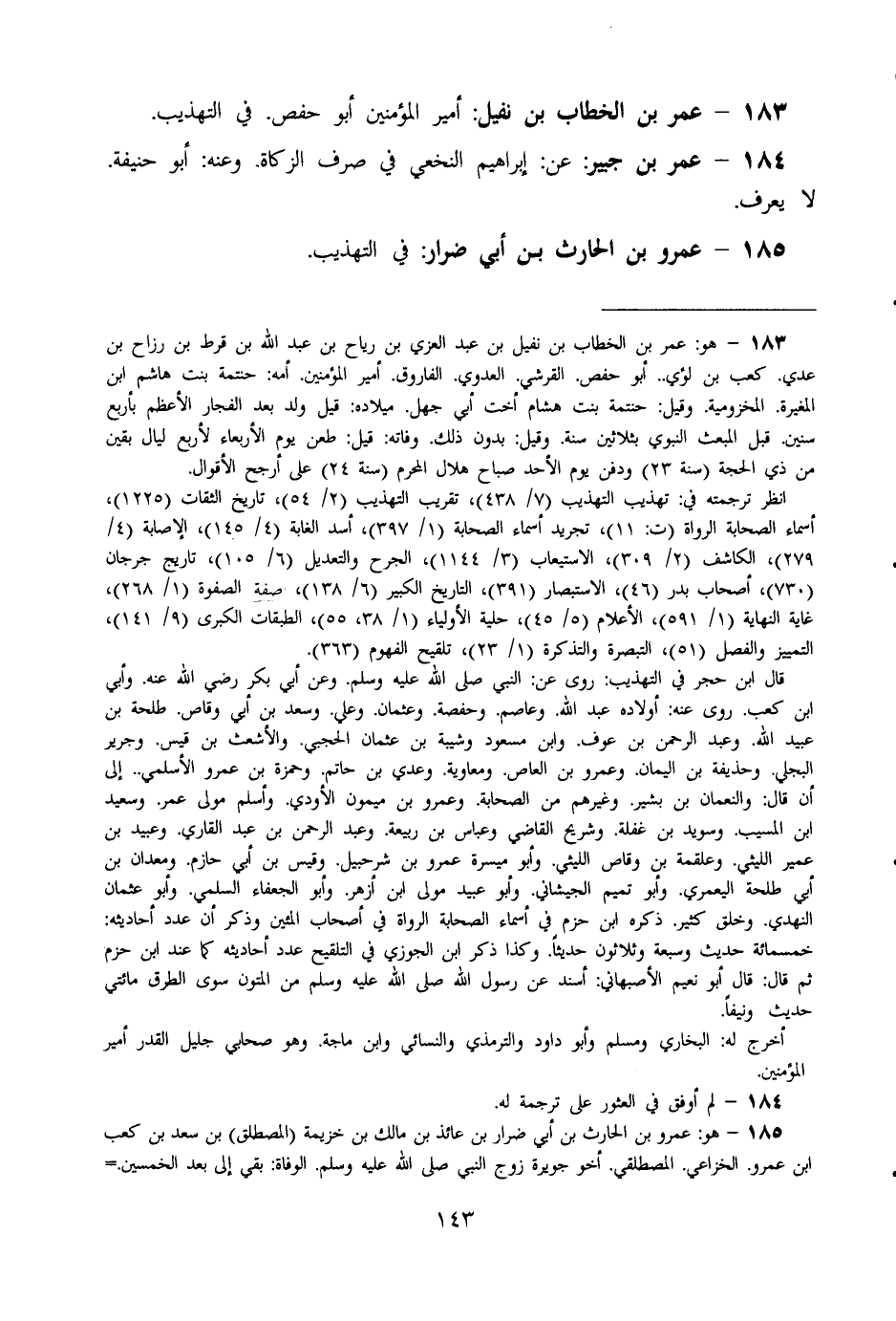 183 - عمر بن الْخطاب بن نفَيْل أَمِير الْمُؤمنِينَ أَبُو حَفْص فِي التَّهْذِيب