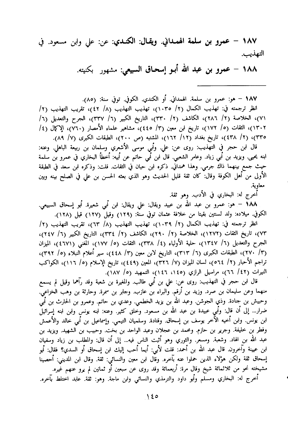 188 - عَمْرو بن عبد الله أَبُو إِسْحَاق السبيعِي مَشْهُور بكنيته