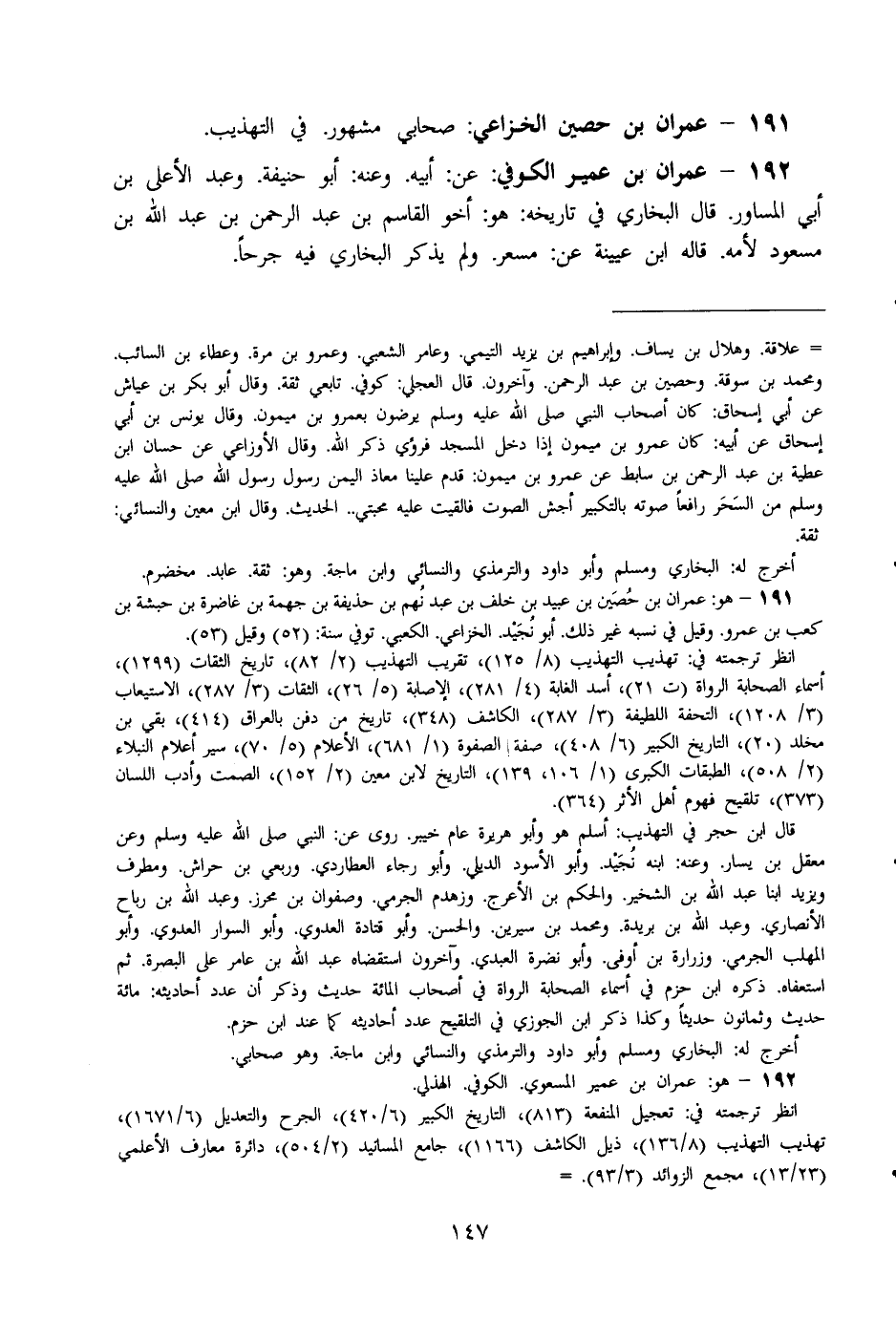 191 - عمرَان بن حُصَيْن الْخُزَاعِيّ صَحَابِيّ مَشْهُور فِي التَّهْذِيب