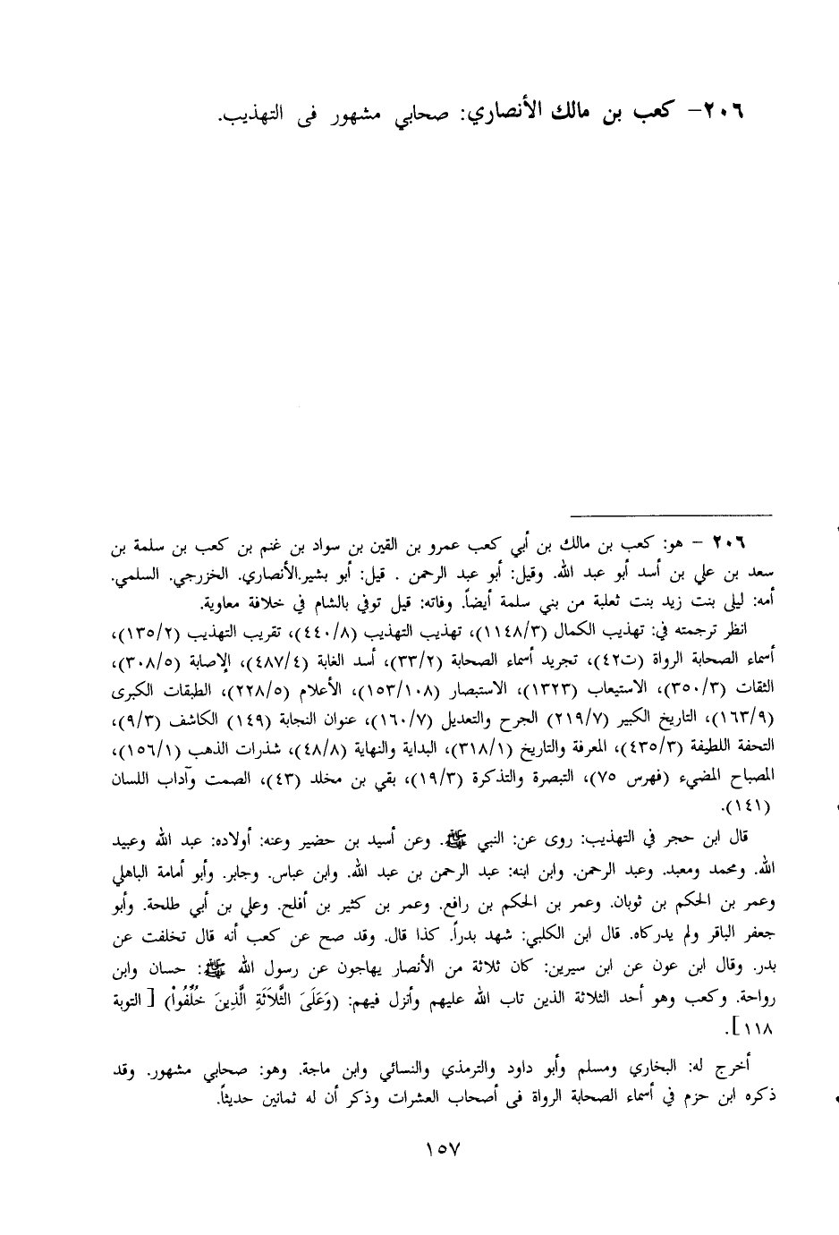 206 - كَعْب بن مَالك الْأنْصَارِيّ صَحَابِيّ مَشْهُور فِي النهذيب