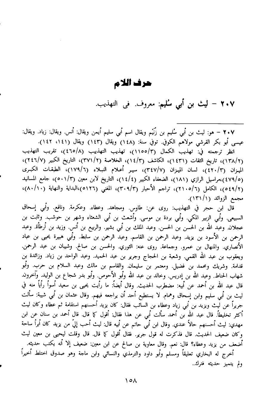 207 - لَيْث بن أبي سليم مَعْرُوف فِي التَّهْذِيب