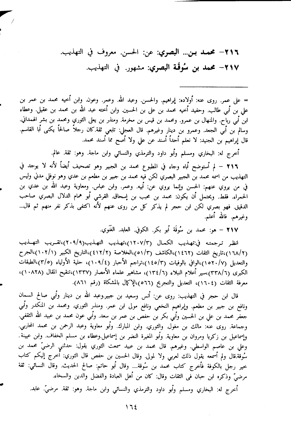 216 - مُحَمَّد بن الْبَصْرِيّ عَن الْحسن مَعْرُوف فِي التَّهْذِيب