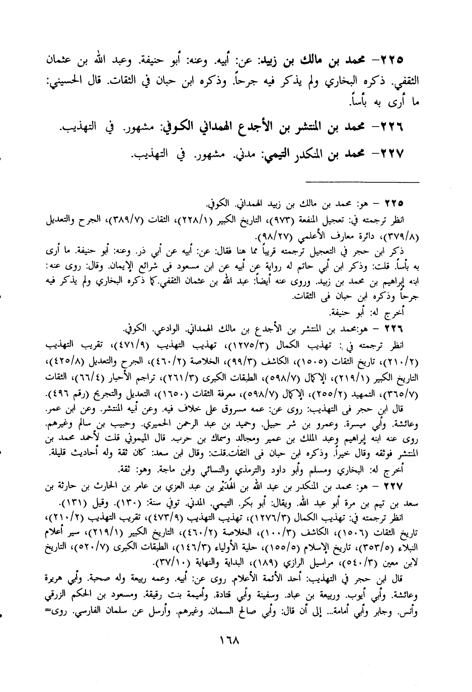 226 - مُحَمَّد بن الْمُنْتَشِر بن الأجدع الْهَمدَانِي الْكُوفِي مَشْهُور فِي التَّهْذِيب