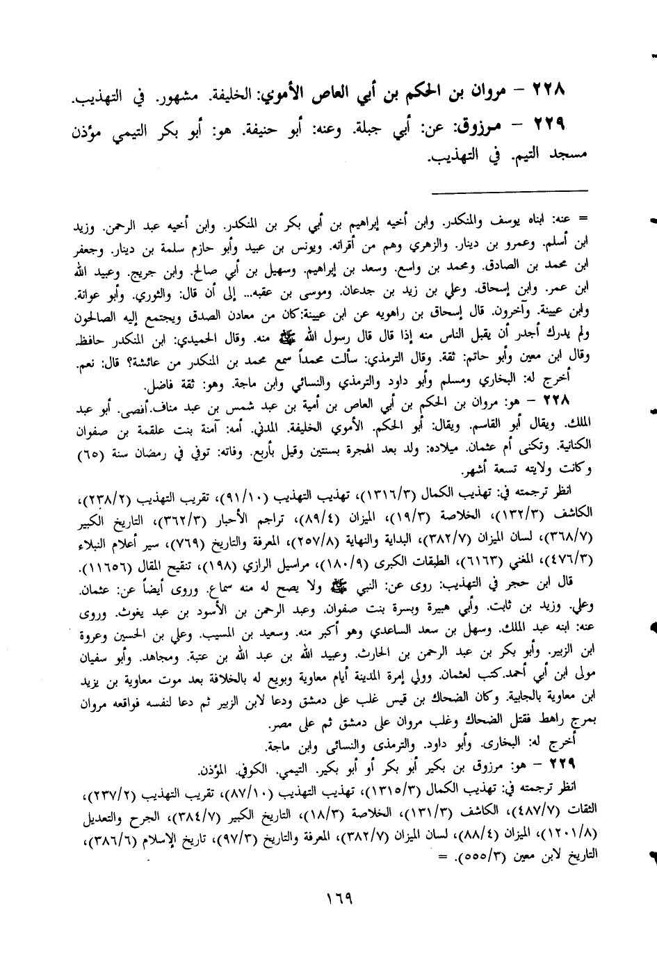 228 - مَرْوَان بن الحكم بن أبي الْعَاصِ الْأمَوِي الْخَلِيفَة مَشْهُور فِي التَّهْذِيب