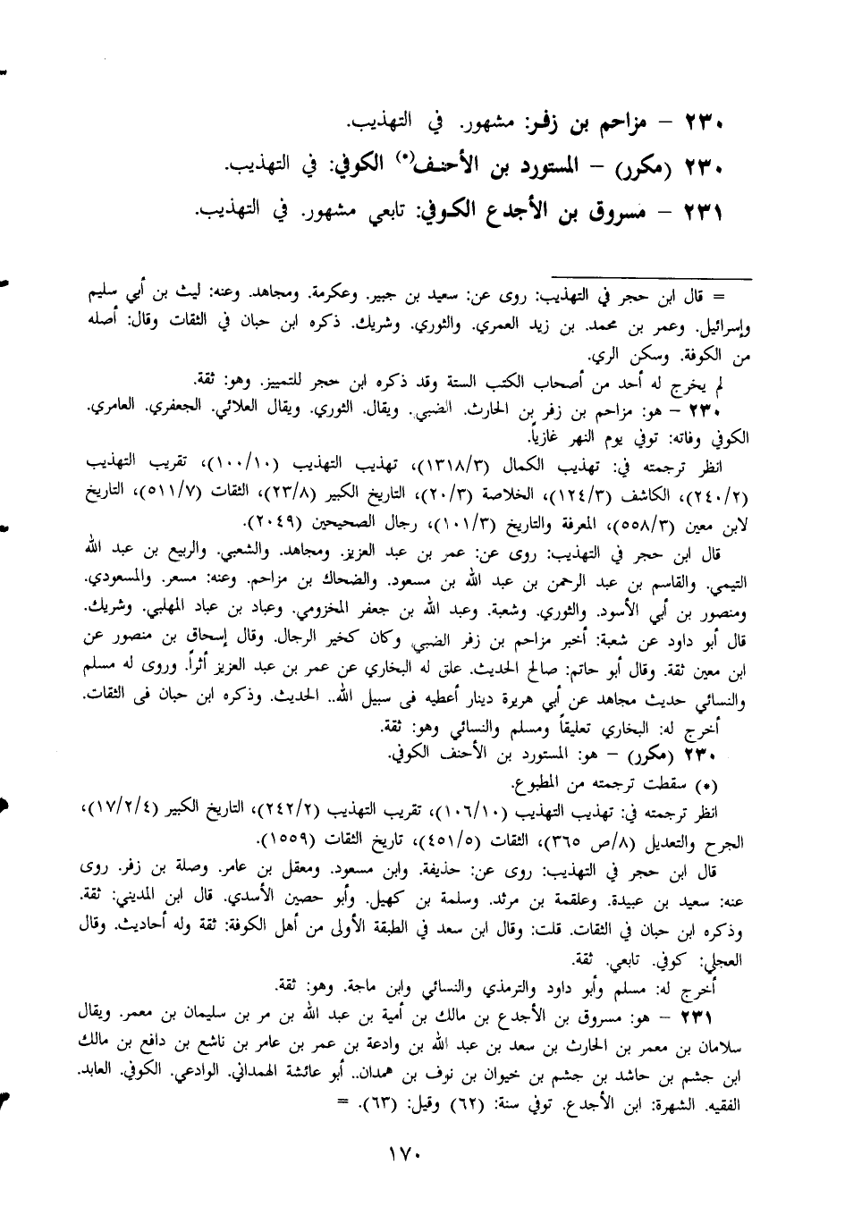 231 - مَسْرُوق بن الأجدع الْكُوفِي تَابِعِيّ مَشْهُور فِي التَّهْذِيب