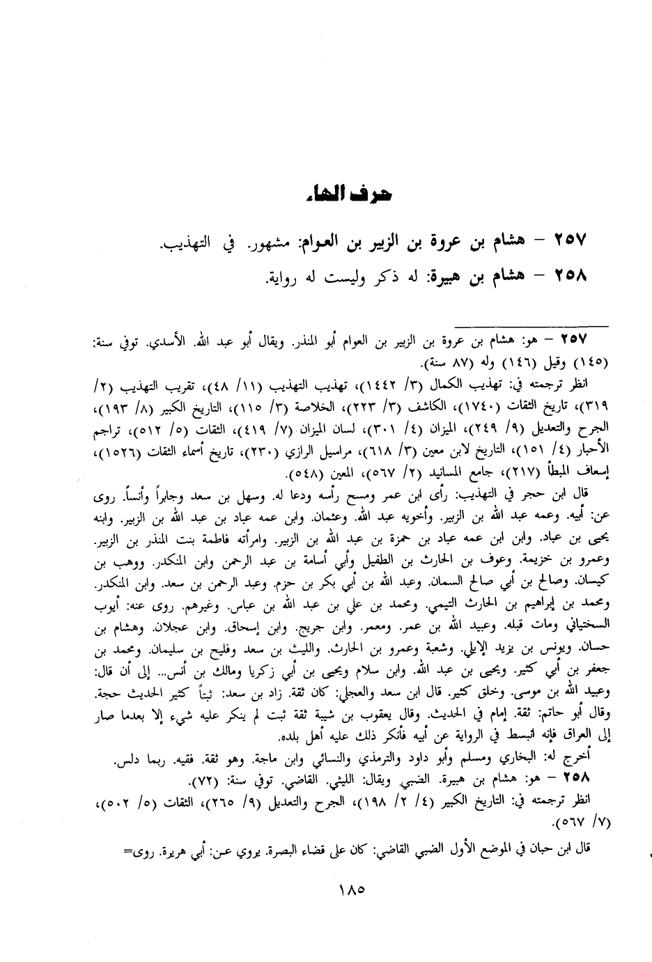 257 - هِشَام بن عُرْوَة بن الزبير بن الْعَوام مَشْهُور فِي التَّهْذِيب