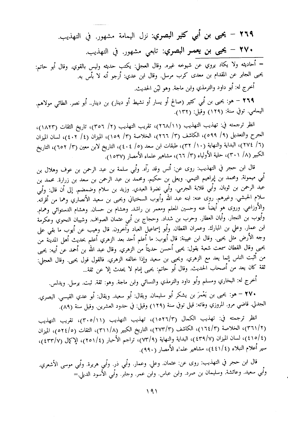 269 - يحيى بن أبي كثير الْبَصْرِيّ نزل الْيَمَامَة مَشْهُور فِي التَّهْذِيب