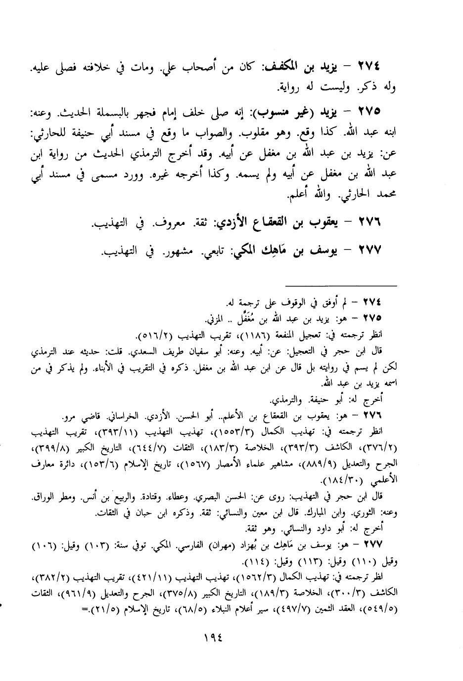 276 - يَعْقُوب بن الْقَعْقَاع الْأَزْدِيّ ثِقَة مَعْرُوف فِي التَّهْذِيب