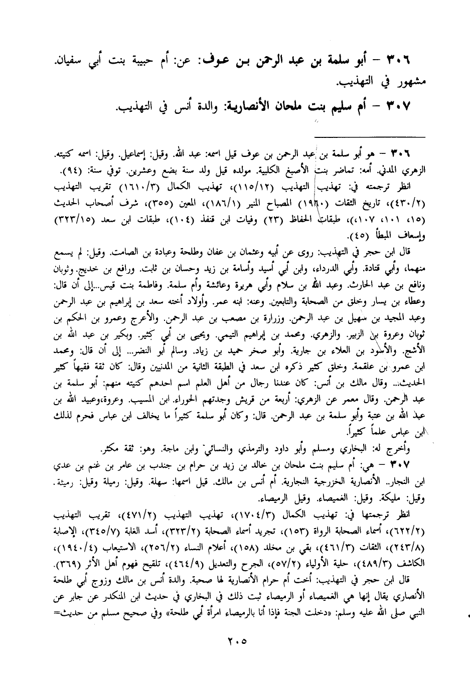 307 - أم سليم بنت ملْحَان الْأَنْصَارِيَّة وَالِدَة أنس فِي التَّهْذِيب