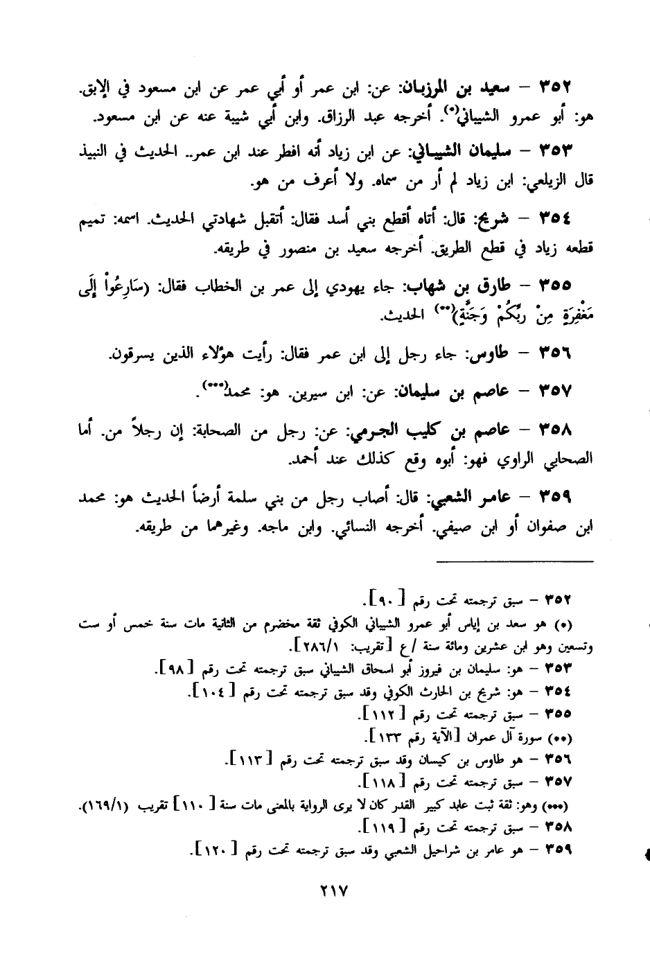 354 - شُرَيْح قَالَ أَتَاهُ أقطع بني أَسد فَقَالَ أتقبل شهادتي الحَدِيث اسْمه تَمِيم قطعه زِيَاد فِي قطع الطَّرِيق أخرجه سعيد بن مَنْصُور فِي طَرِيقه