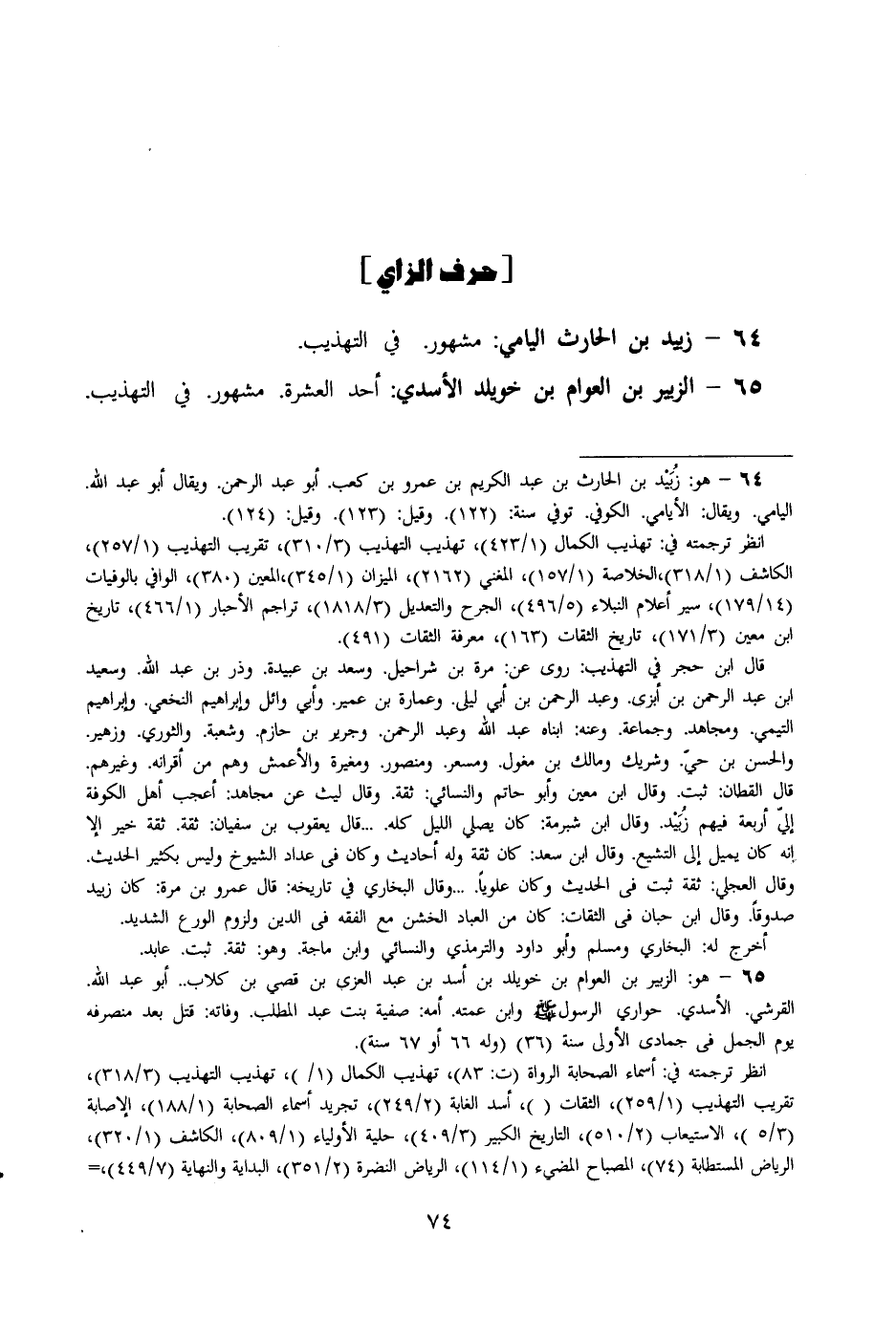 65 - الزبير بن الْعَوام بن خويلد الْأَسدي أحد الْعشْرَة مَشْهُور فِي التَّهْذِيب