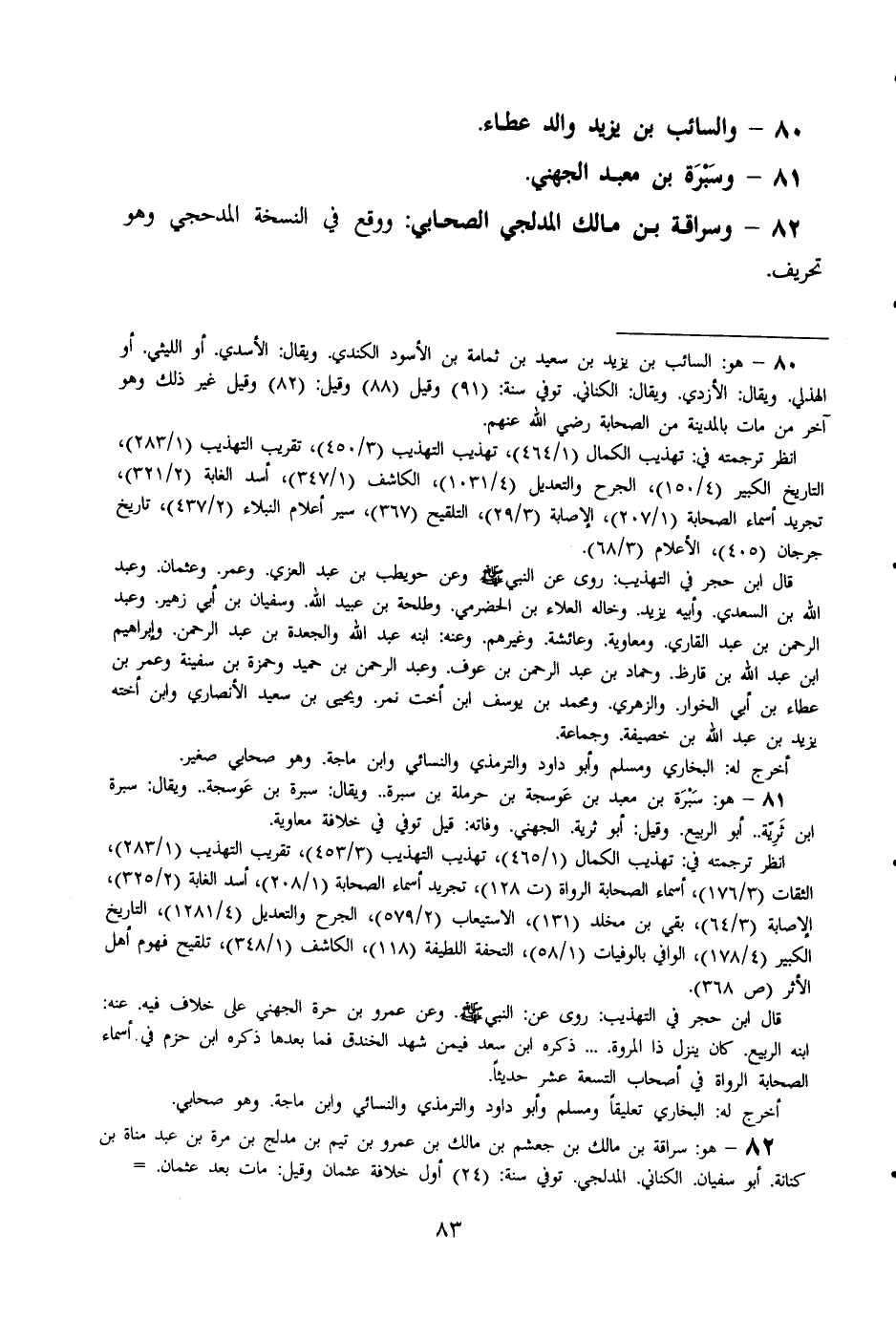 82 - وسراقة بن مَالك المدلجي الصَّحَابِيّ وَوَقع فِي النُّسْخَة المدحجي وَهُوَ تَحْرِيف