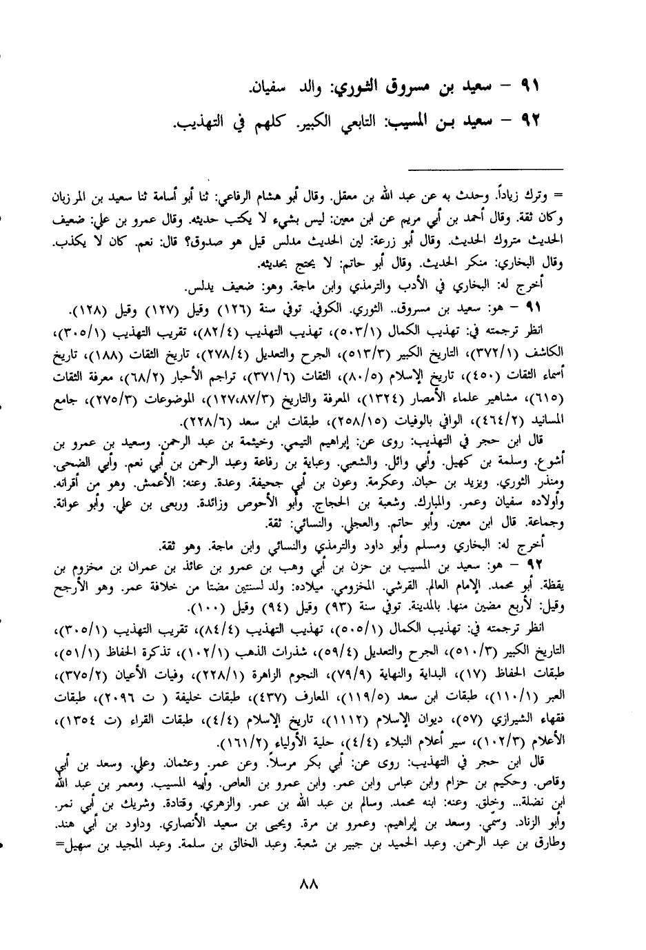 92 - سعيد بن الْمسيب التَّابِعِيّ الْكَبِير كلهم فِي التَّهْذِيب