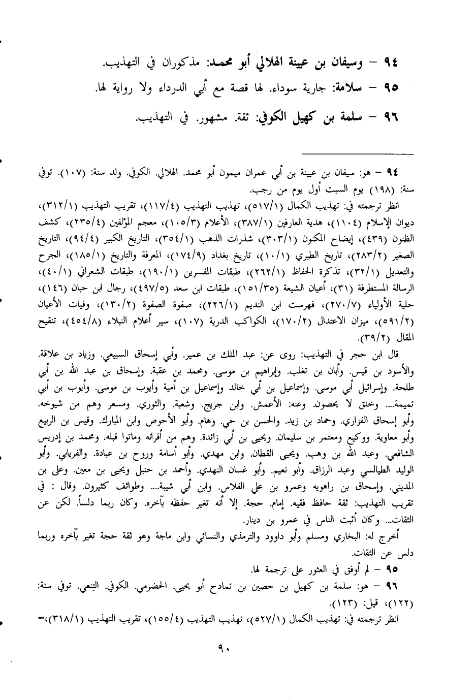 96 - سَلمَة بن كهيل الْكُوفِي ثِقَة مَشْهُور فِي التَّهْذِيب