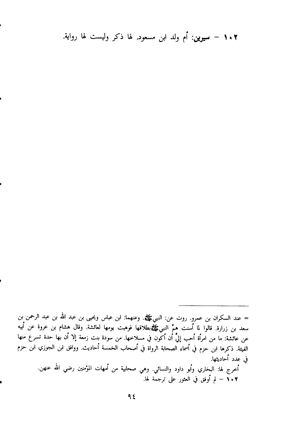 102 - سِيرِين أم ولد ابْن مَسْعُود لَهَا ذكر وَلَيْسَت لَهَا رِوَايَة