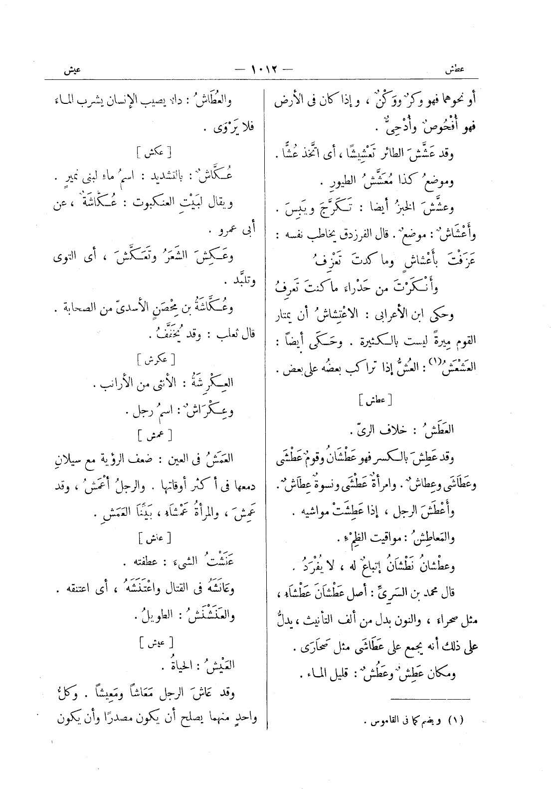 [عكش] عكاش: بالتشديد: اسم ماء لبنى نمير. ويقال لبيت العنكبوت: عكاشة، عن أبى عمرو. وعكش الشعر وتعكش، أي التوى وتلبد. وعكاشة بن محصن الاسدي من الصحابة. قال ثعلب: وقد يخفف.