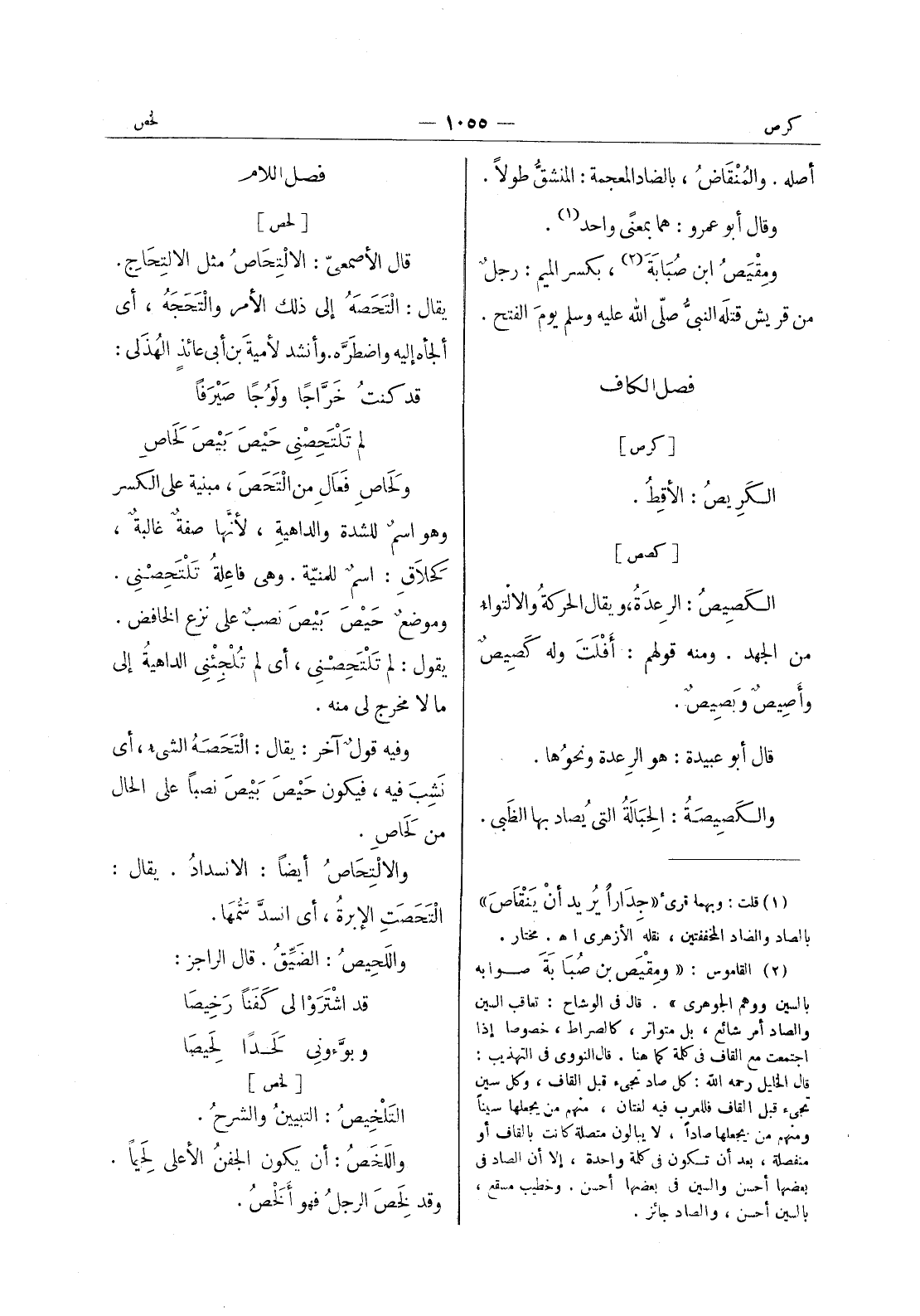 (¬1) قلت: وبهما قرئ " جدارا يريد أن ينقاص " بالصاد والضاد المخففتين، نقله الازهرى اهـ. مختار.