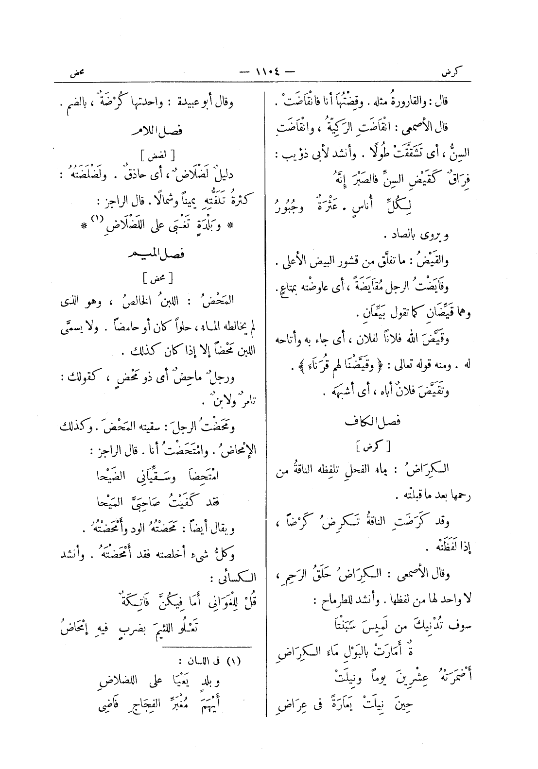 (¬1) في اللسان: وبلد يعيا على اللضلاض * أيهم مغبر الفجاج فاضى: